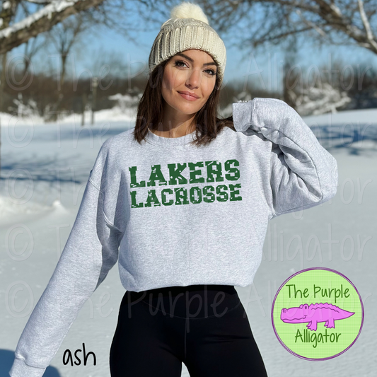 Lakers Lacrosse Distressed Mascot School Spirit - CHOOSE YOUR DESIGN COLOR (d2f TPA)