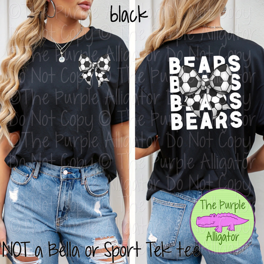Bears Stack Soccer Bow Front/Back Mascot School Spirit Wear Team Gear - CHOOSE YOUR TEXT COLOR - 0525 (d2f TPA)