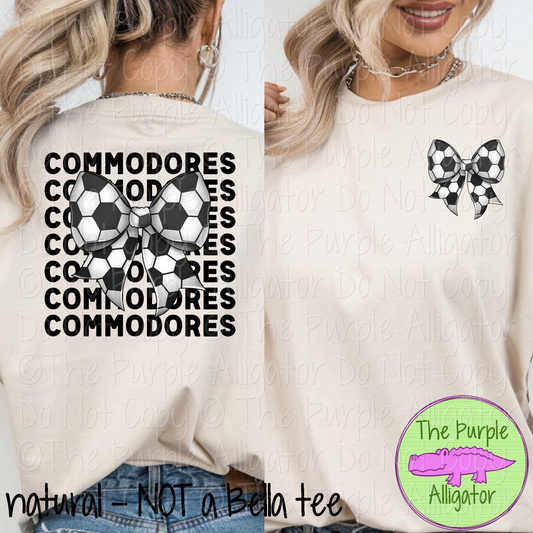 Commodores Stack Soccer Bow Front/Back Mascot School Spirit Wear Team Gear - CHOOSE YOUR TEXT COLOR - 0525 (d2f TPA)