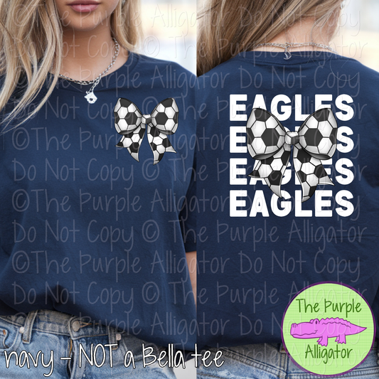 Eagles Stack Soccer Bow Front/Back Mascot School Spirit Wear Team Gear - CHOOSE YOUR TEXT COLOR - 0525 (d2f TPA)