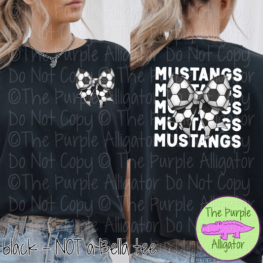 Mustangs Stack Soccer Bow Front/Back Mascot School Spirit Wear Team Gear - CHOOSE YOUR TEXT COLOR - 0525 (d2f TPA)