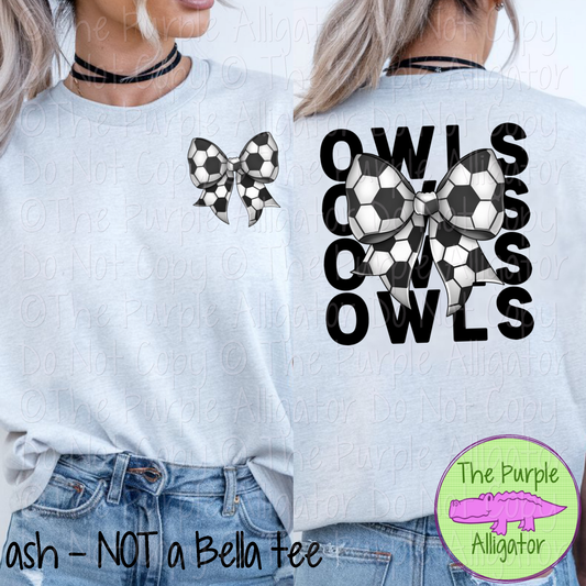Owls Stack Soccer Bow Front/Back Mascot School Spirit Wear Team Gear - CHOOSE YOUR TEXT COLOR - 0525 (d2f TPA)