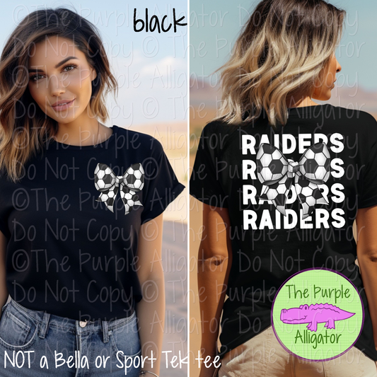 Raiders Stack Soccer Bow Front/Back Mascot School Spirit Wear Team Gear - CHOOSE YOUR TEXT COLOR - 0525 (d2f TPA)