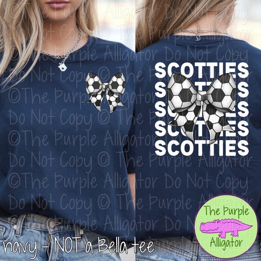 Scotties Stack Soccer Bow Front/Back Mascot School Spirit Wear Team Gear - CHOOSE YOUR TEXT COLOR - 0525 (d2f TPA)