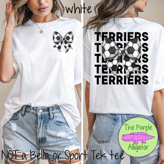 Terriers Stack Soccer Bow Front/Back Mascot School Spirit Wear Team Gear - CHOOSE YOUR TEXT COLOR - 0525 (d2f TPA)