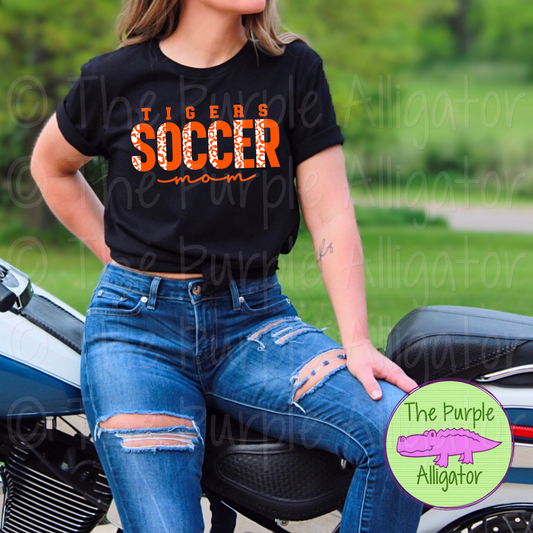 Tigers Soccer Mom SC32 Mascot School Spirit - CHOOSE YOUR DESIGN COLORS (d2f TPA)