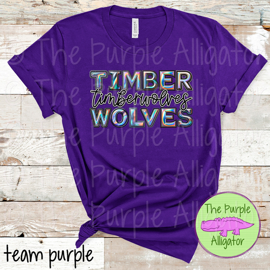 Timberwolves Hollow Swash Mascot Spirit School Spirit Wear Team Swag - CHOOSE YOUR DESIGN COLOR - 0625 (d2f TPA)
