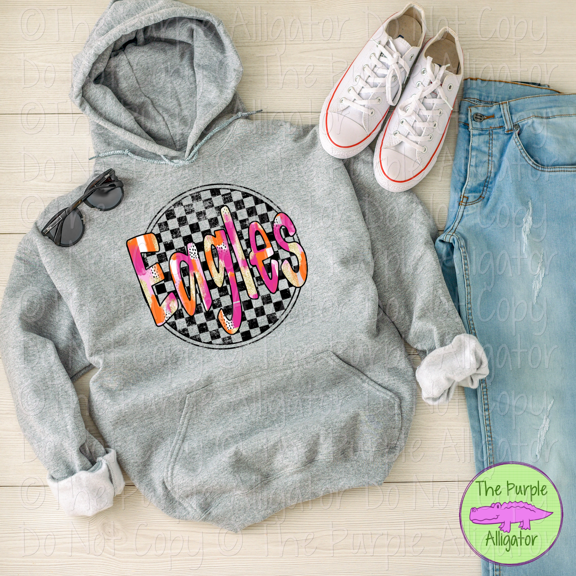 Eagles Preppy Distressed Checker Mascot School Spirit 0225 (d2f TPA)