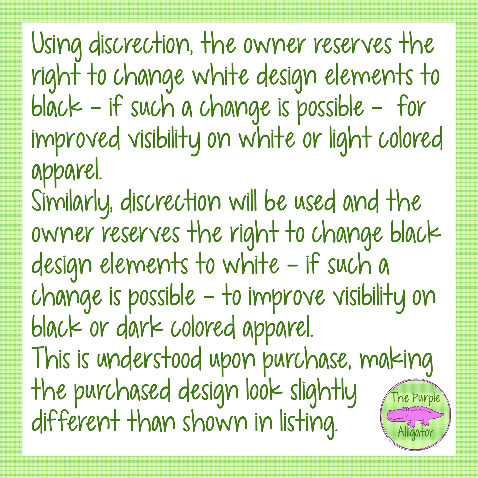 Please note that the colors seen on computer monitors or mobile screens may slightly differ from the actual design and apparel colors due to variations in display settings and screen resolutions.