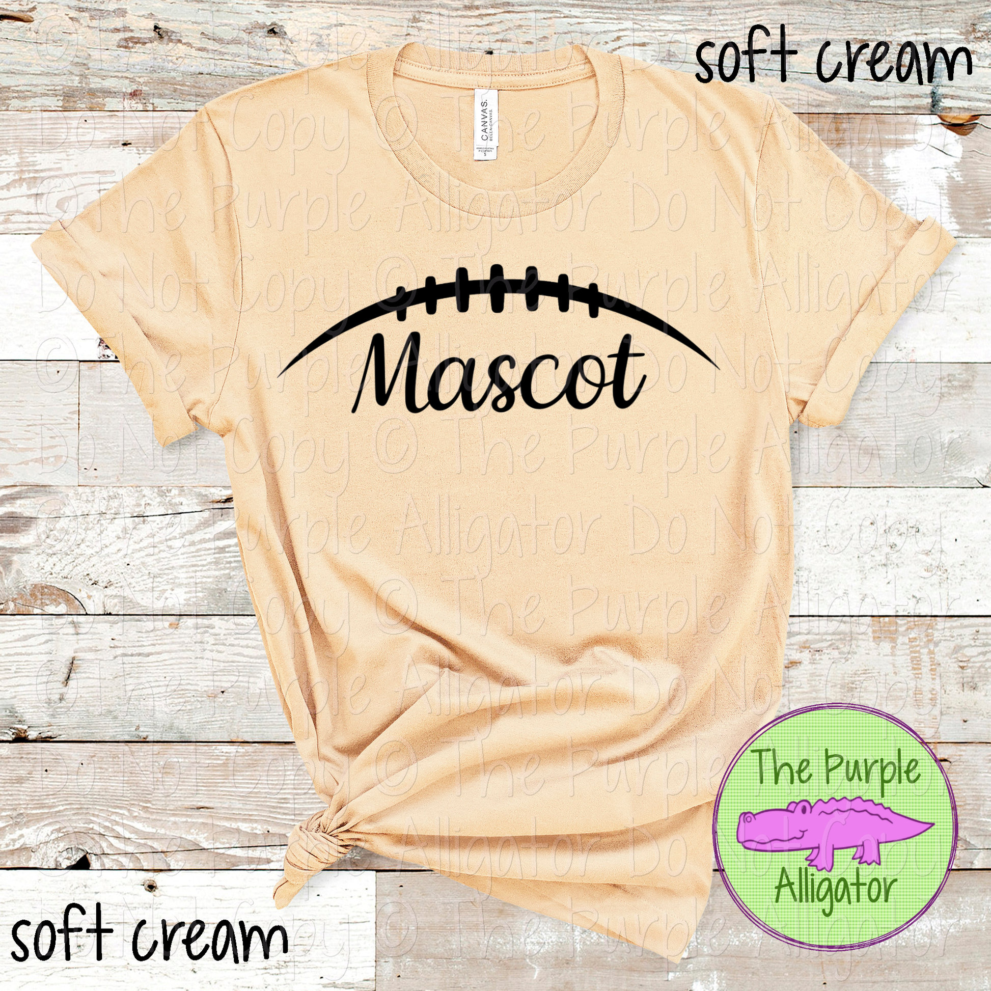 Show your team spirit with our Mascot Football design - perfect for game days, pep rallies, and cheering from the stands. This design features a football-shaped arch with stitched laces across the top, and your mascot name in a casual, easy-to-read script underneath.